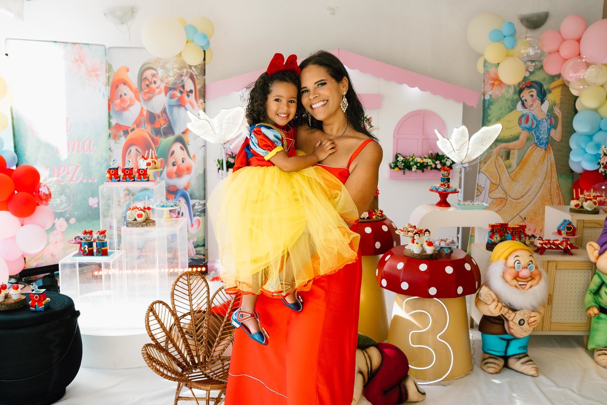 O aniversário de 3 anos da Duda foi um verdadeiro conto de fadas com o tema Branca de Neve! Uma celebração encantadora, cheia de detalhes pensados com carinho, onde a pequena viveu momentos dignos de princesa.